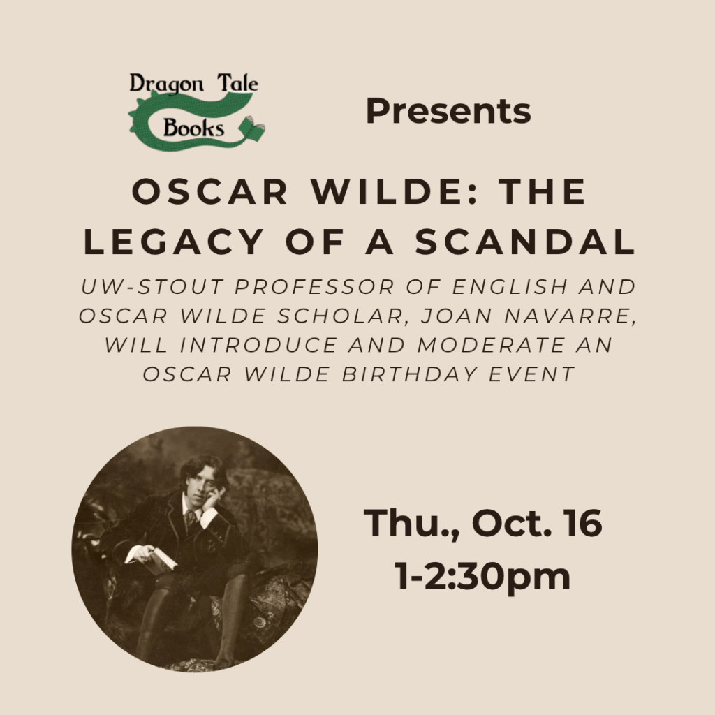 UW-Stout Professor of English and Oscar Wilde scholar, Joan Navarre, will introduce and moderate an Oscar Wilde Birthday Event: live streaming from the British Library. Merlin Holland, the grandson of Oscar Wilde, will be speaking with noted actor Rupert Everett about Oscar Wilde’s life and legacy.