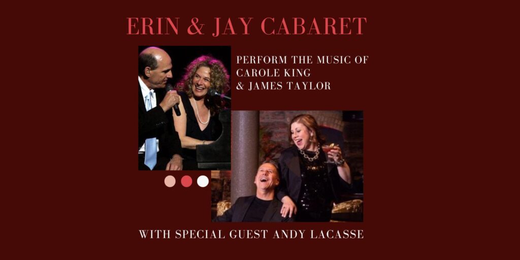 Erin Schwab and Jay Fuchs are thrilled to present their popular Carole King and James Taylor tribute show. With songs like Natural Woman, Beautiful, Sweet Baby James, How Sweet It Is and so many MORE. You are going to LOVE it! Also, joining Jay and Erin will be longtime friend and musical collaborator, Andy LaCasse, who will contribute his beautiful guitar playing and singing.