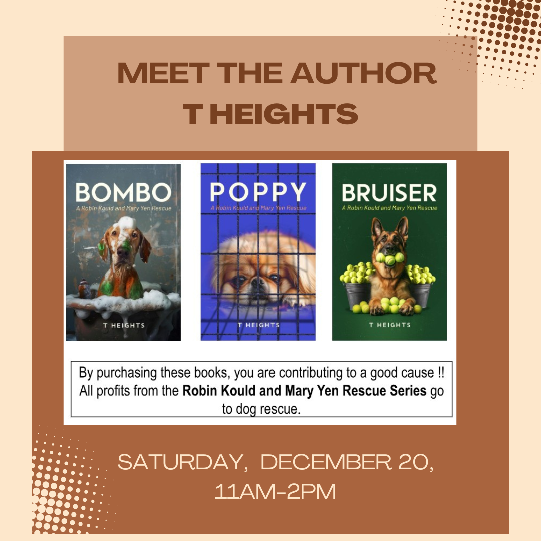 Drop in and meet author T Heights, she’ll have books for sale and signing. And profits go to a dog rescue. The Books: Bombo is the first in a series about […]
