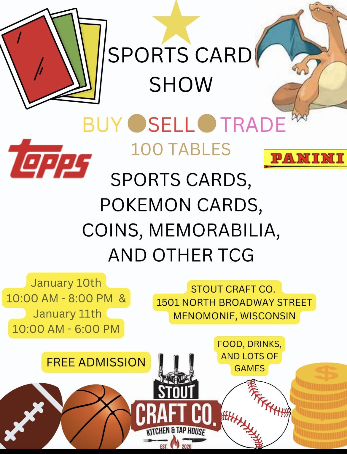 sports Cards and Coin Show Buying and Selling Saturday and Sunday Jan 10-11 Stout Craft Co